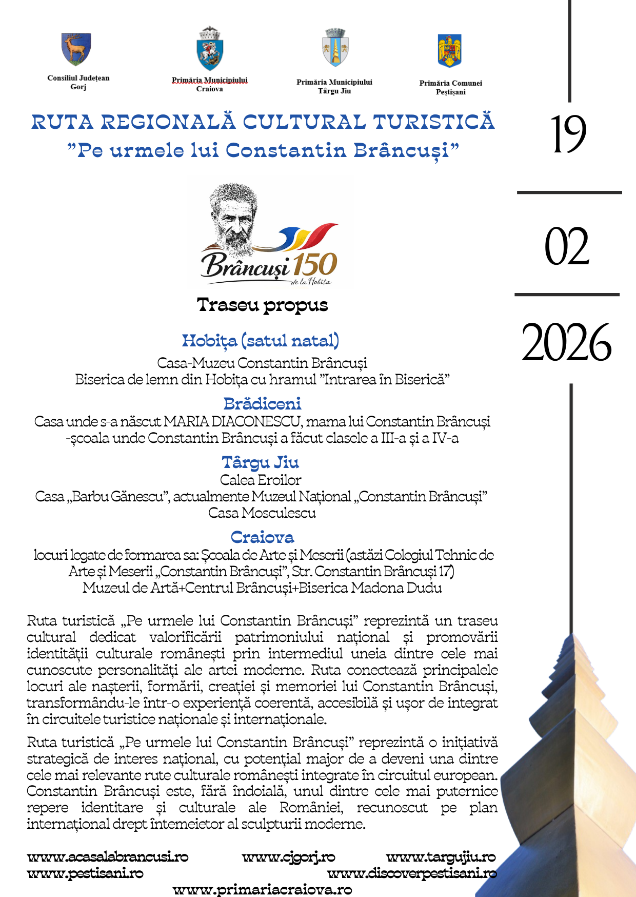 „Pe urmele lui Brâncuși” nu este doar o rută. Este un angajament. Pentru Gorj și Dolj. Pentru România. Pentru generațiile care vin.