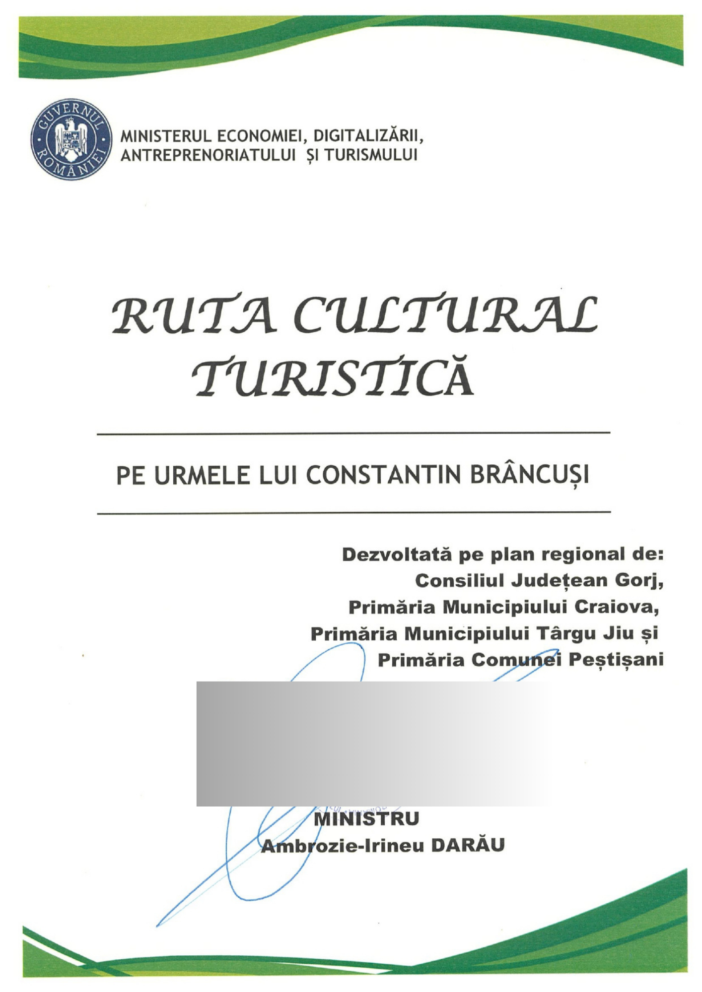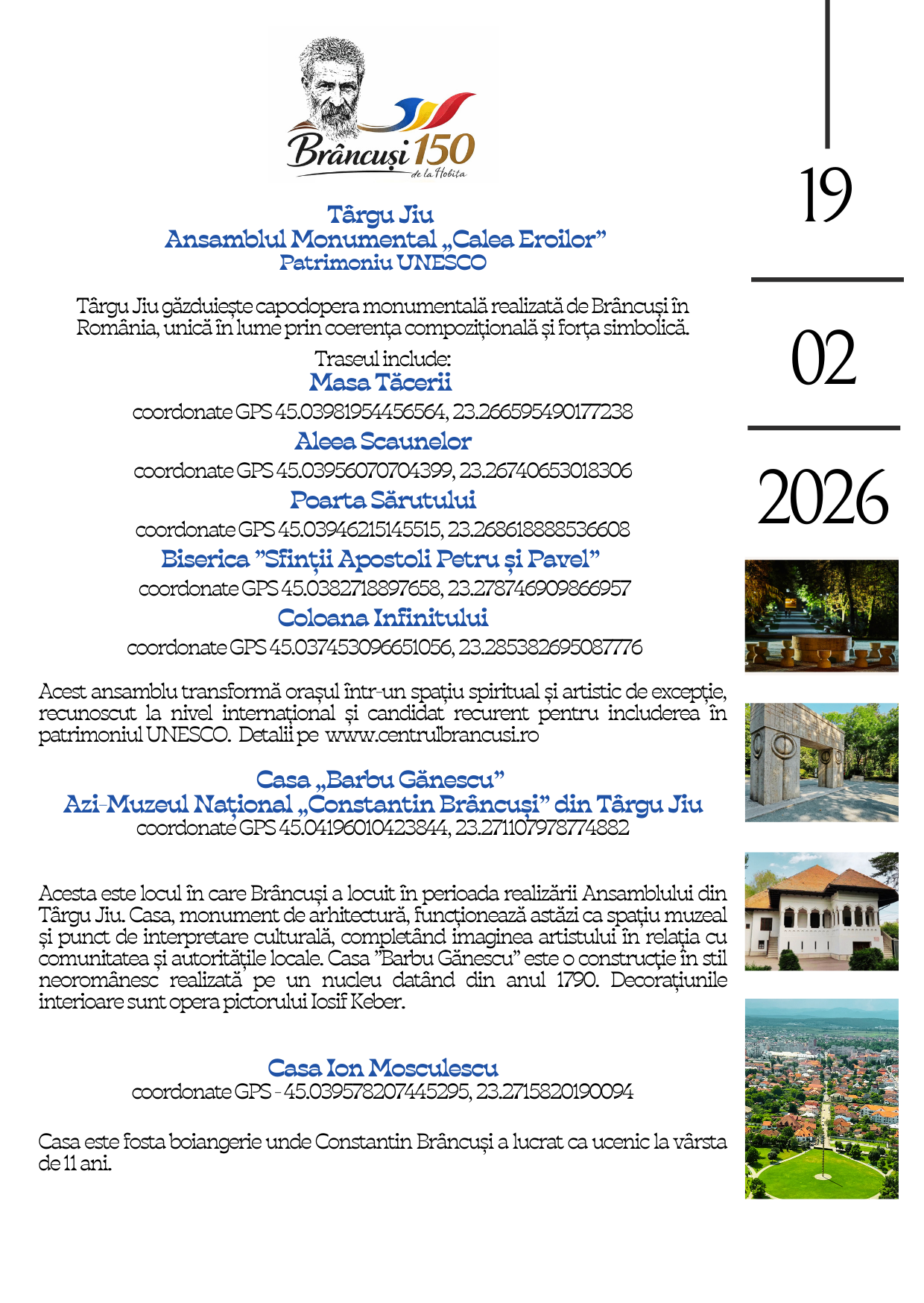 Această rută nu este doar un traseu pe hartă. Este un produs turistic integrat, competitiv, construit în jurul unui brand cultural global. Brâncuși este, în sine, un nume care deschide granițe. Prin această rută, transformăm notorietatea sa într-o experiență turistică autentică și coerentă