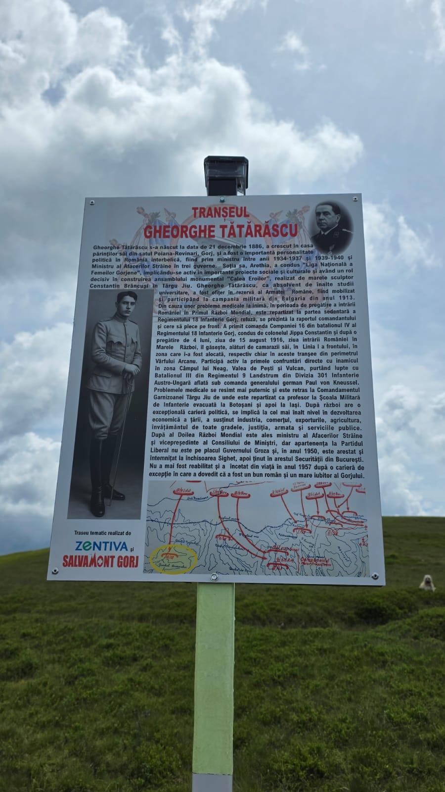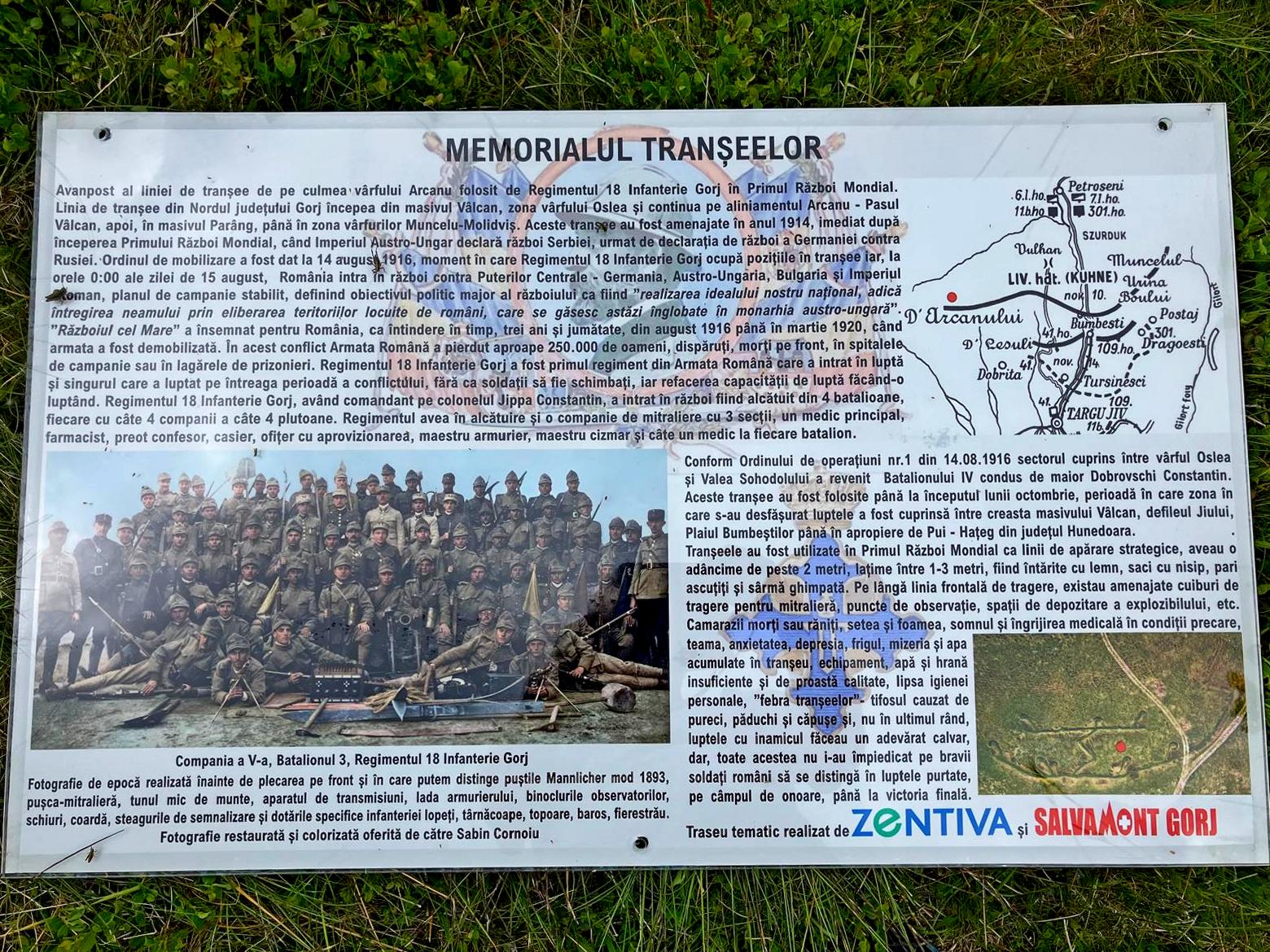 Traseul Tranșeelor este primul traseu turistic tematic cu profil istoric amenajat în zona montană a județului Gorj. Creat cu sprijinul salvamontiștilor gorjeni și al voluntarilor iubitori de munte, traseul îmbină frumusețea sălbatică a Masivului Vâlcan cu mărturii autentice ale luptelor purtate de Armata Română în Primul Război Mondial.